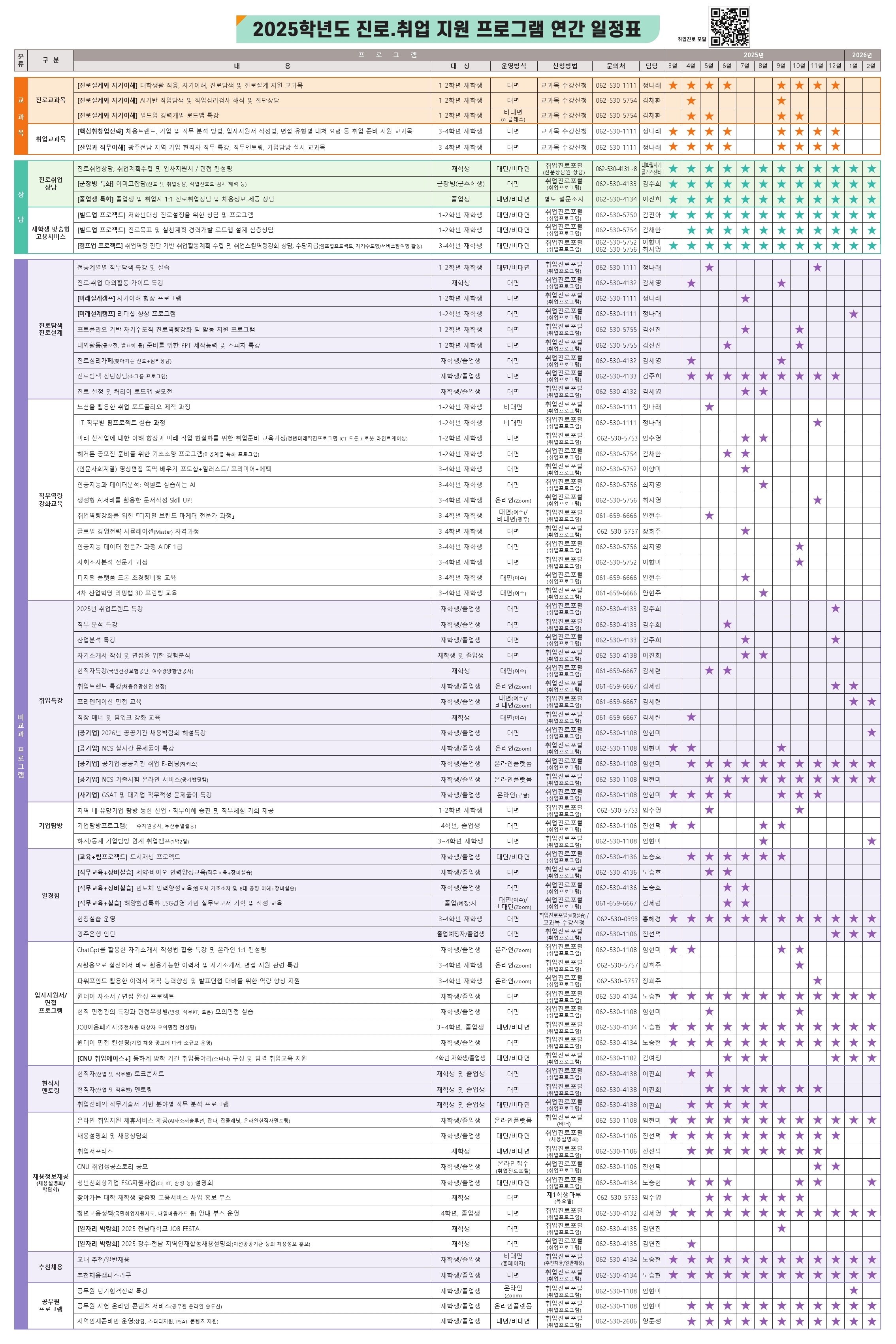 2025학년도 진로·취업 지원 프로그램 연간 일정표